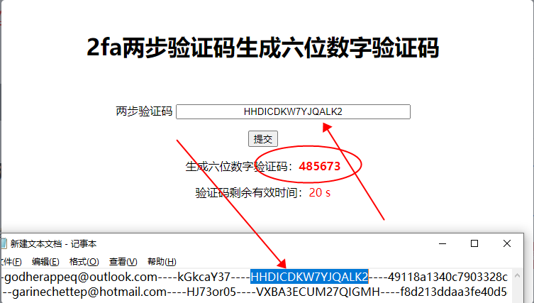 2. 去网址 2fa.show,复制卡密第5项(2FA秘钥),生成六位数字验证码